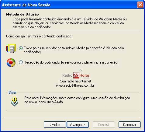 1) abra seu navegador de internet explore e digite: mms://IP da Rádio24Horas/e_o_seu_ponto_de_publicação
