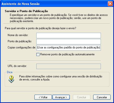3- Selecione a 1ª opção "Envio para um servidor..." e clique em "Avançar".