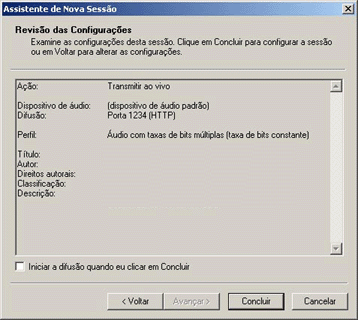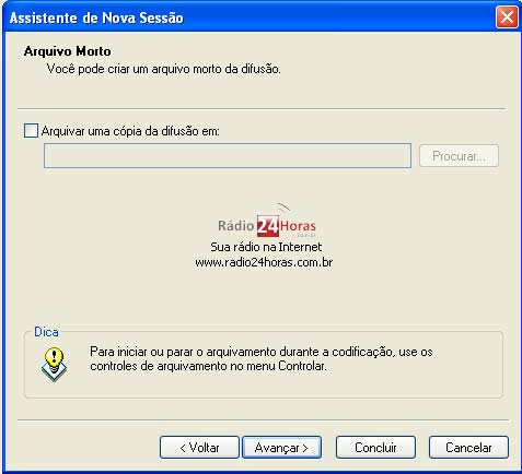 6- Caso deseje criar uma cópia de tudo que é transmitido selecione a opção "Arquivar uma cópia da difusão em:", caso não queira deixe desmarcado e clique em "Avançar".